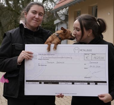 übergab Manon Tolkowski von der „Metallbude“ die stolze Summe von 1620 Euro aus der Aktion zum "Liebe-dein-Haustier-Tag" an Jessica Dey.