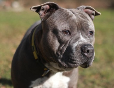Aus einer behördlichen Sicherstellung wegen unzulänglicher Haltungsbedingungen mussten wir fünf Staffordshire-Mischlinge aufnehmen. Einer von ihnen ist der Rüde Mooncake, der bereits im August über die Behörde zu uns kam und jetzt zur Vermittlung freigegeben wurde.