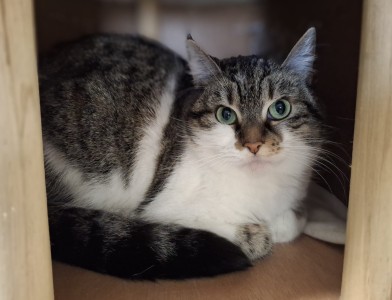 Sie zeigt sich noch ängstlich und zurückhaltend und braucht Zeit, um Vertrauen zu fassen. Hier sind einfühlsame und geduldige Menschen gefragt, die die noch skeptische Katzendame in kleinen Schritten ankommen und sich eingewöhnen lassen. Schon jetzt rückt sie Stück für Stück näher.