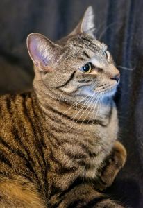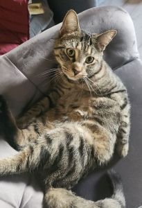 Besondere Kennzeichen: großer schlanker Kater, leichter Hängebauch durch Kastration, auffallend langer Schwanz, weißes Kinn, markante Kopfzeichnung