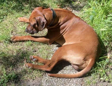 Im Umgang mit anderen Hunden ist er manchmal noch etwas aufgeregt, aber stets freundlich unterwegs. An anderen Menschen (außer seiner Familie) ist er oft nicht besonders interessiert, was bei einem Hund seiner Größe eigentlich sehr angenehm ist. Die ersten Kurse in der Hundeschule hat er inzwischen schon absolviert, und ein bisschen gewachsen ist er auch noch.