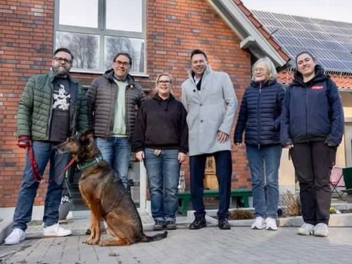 Mit großer Freude verabschiedete sich Detmolds Bürgermeister Frank Hilker von seinem Patenhund Balou, der nach sechs Jahren Tierheim ein Zuhause gefunden hat.
